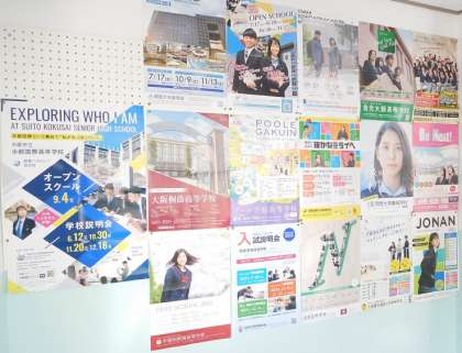 また、廊下にはいろいろな高校のポスターが掲示されています。