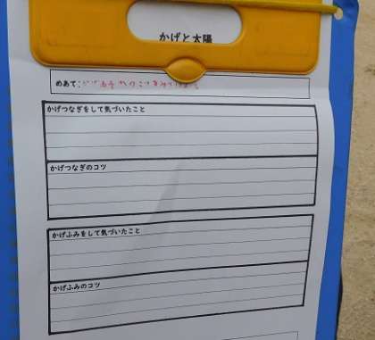 今日は晴れていて、先日できなかった「かげと太陽」の学習をしました。