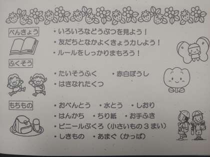 リュックに遠足の用意(弁当)・【体操服で登校】