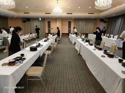 食事係が、朝食の準備をしています。