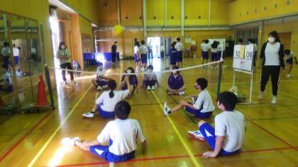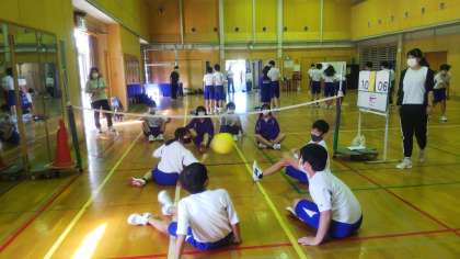 床にお尻の一部が接触した状態でプレーするチーム競技です。