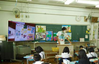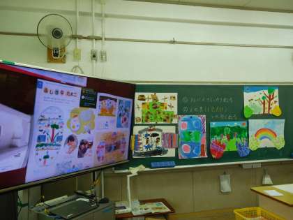 2年生が図画工作科で「ふしぎなたまご」を描いています。