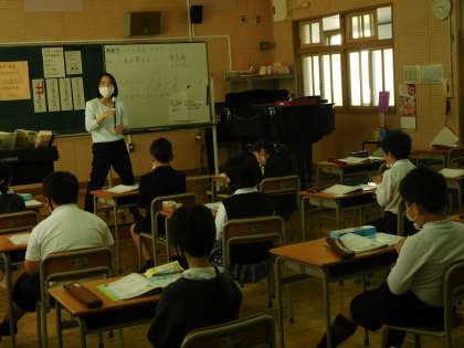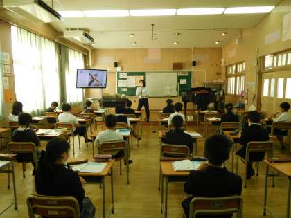 3年生が音楽の授業でリコーダーの演奏をしています。