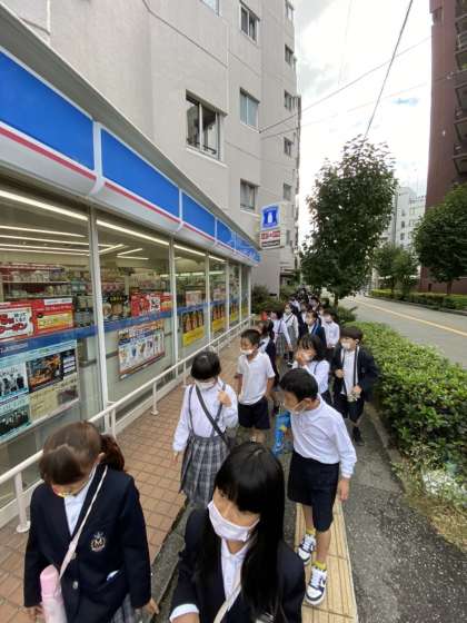 「もっとなかよしまちたんけん」「みんなでつかうまちのしせつ」の学習として、まちたんけんに出かけました。