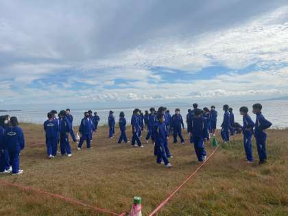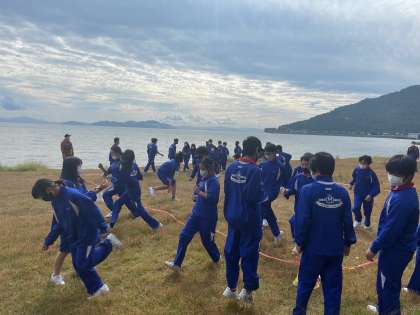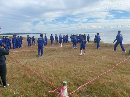 ルールは、20秒以内にスタートラインからゴールラインまで5mの間を鬼にタッチされずに走り抜ける。タッチされたら、鬼になり、最後まで生き残るゲームです。