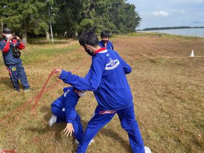 ルールは、ズボンにテープのしっぽをはさみ、決められた範囲の中で、しっぽを取り合う。