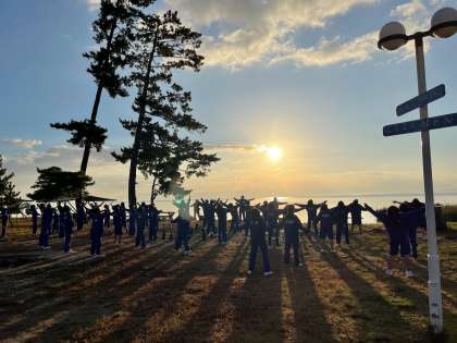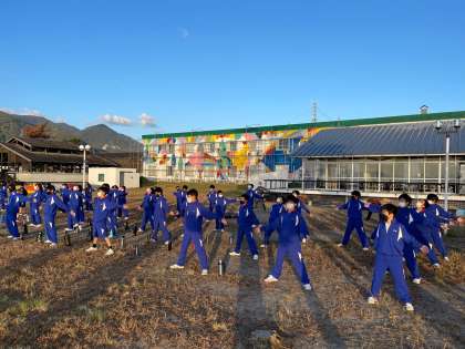 眠そうな目をこすりながらも、元気にラジオ体操を行いました。