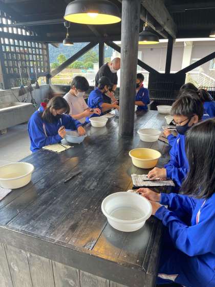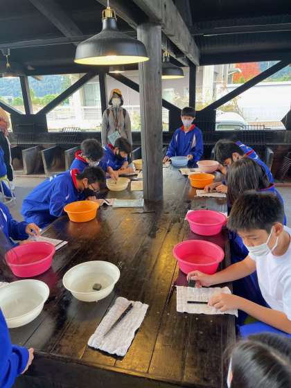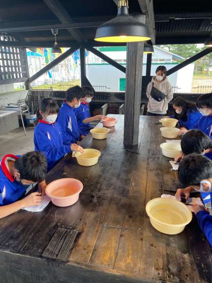 本日最初の野外活動は、クラフト体験で、若狭塗り箸づくりです。