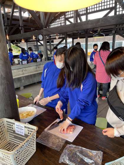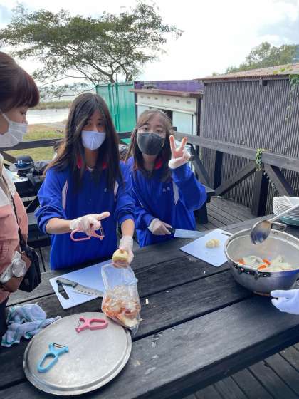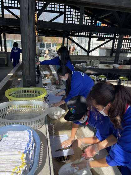 この班は、切り終えた包丁とまな板をすぐに洗っています。