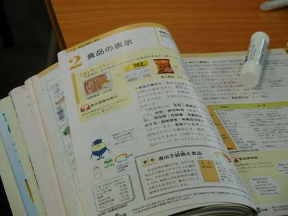 8年生が技術家庭科の時間に「食品の表示」について学習しています。