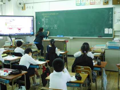 3年生が3つのグループに分かれて、かけ算の学習をしています。