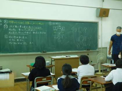 みんな先生の話をしっかりと聞いて考えています。