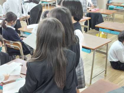 この時間は、どんなことを聞くか考えて、インタビューの練習をしていました。
