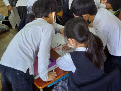 2年生が、12日(金)に出かけるまちたんけんの計画を立てていました。