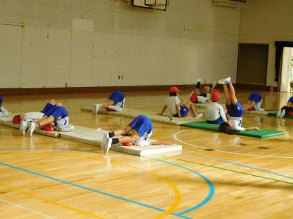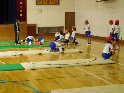 4年生が体育の学習で「マット運動」の前転・後転に取り組んでいます。