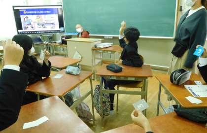 各班ごとに話し合って、3つの選択肢から適切な回答を選びます。