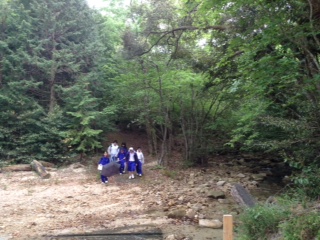 7年生の一泊移住は、「里山ハイク」の活動をおこないました。耳をすませばせせらぎの音がきこえます。新緑の里山が清々しいです。ところが、およそ半分の班が到着した頃から風雨が強まってきました。スカッと晴れわたる天気なら…という思いは誰しも同じですが、自然が相手では仕方がありません。昼食は予定を変更して体育館でお弁当を食べました。ホッと楽しいひと時です。