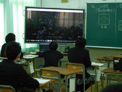 9年生が理科の時間に「星の1年の動き」について学習しています。