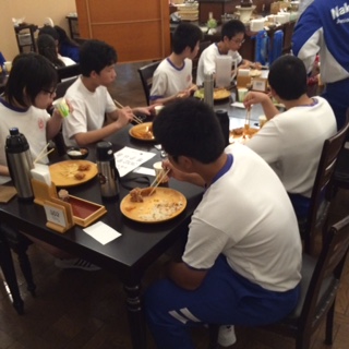 5月14日(木)6時30分、起床。部屋の片づけなどを済ませた後、朝食をいただきました。ホテルの食事は昨日の夕食も含め、非常に美味しいハイクオリティなバイキングでした。昨晩のレク大会はバレーボールに始まり、おしくら新聞、グルグルラン、ジェット風船など盛りだくさん。最後のクイズ大会まであっという間の1時間でした。終始、大盛り上がりで、学年の絆を深めることができた楽しいひとときでした。