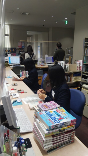 大阪経済大学図書館で蔵書点検をしています。