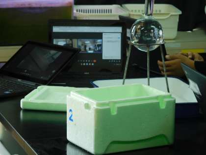 4年生が理科の学習で「ものの温度と体積」について実験・観察をしています。