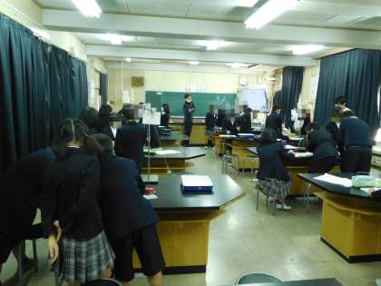 みんな先生の説明をしっかりと聞いてグループごとに活動しています。