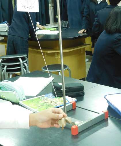 5年生が理科の時間に「ふりこのきまり」について学習しています。
