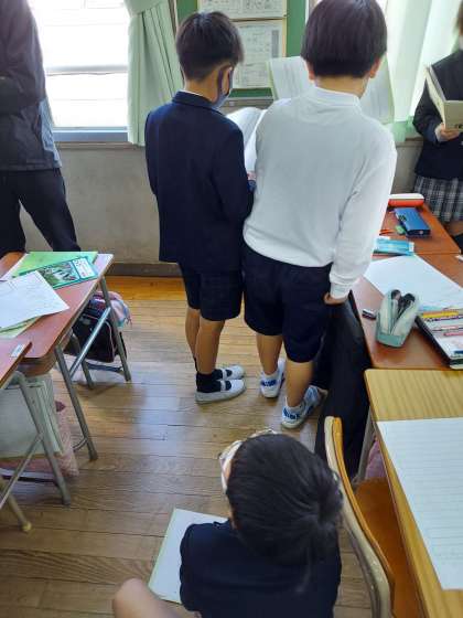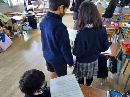 「ごん」や「兵十」になりきって、今日の学習場面の役割演技(ロールプレイ)をしながら、登場人物の気持ちを考えていました。