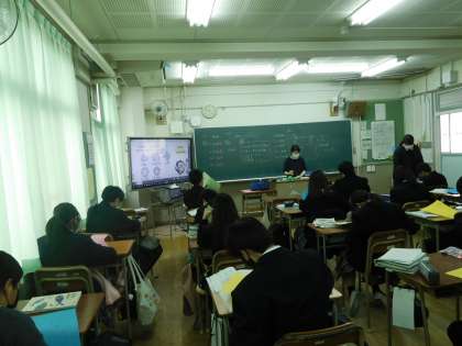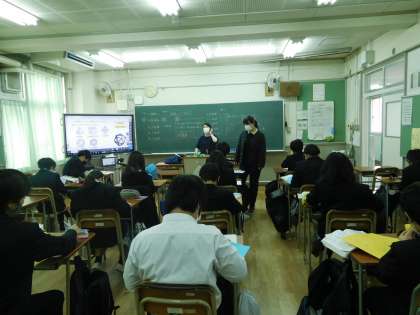 7年生が数学の時間にいろいろな立体で「多面体」について学習しています。