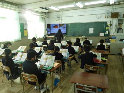 2年生が音楽の時間に「こぐまの二月」を鍵盤ハーモニカで演奏に取り組んでいます。