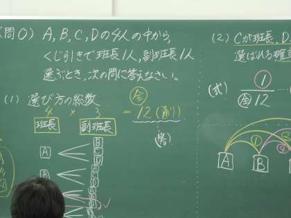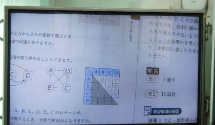 8年生が数学の時間に「組み合わせ」について学習しています。