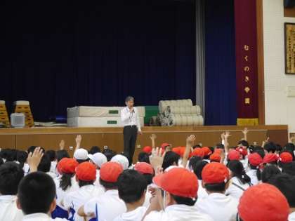 校長先生から、「スポーツ競技で負けることは恥ずかしいことではなく、負ける度に必ず成長があります。」また「一生懸命がんばっている人を応援できる人になりましょう。」というお話があり、子供たちはうなずきながら静かに聴いていました。改めてスポーツって素晴らしいと感じることができた児童朝会でした。