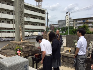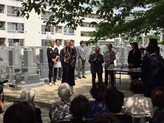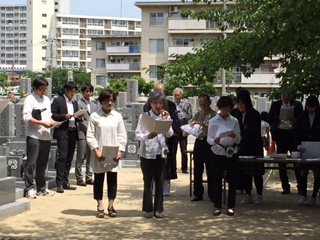6月7日(日)、崇禅寺境内の戦災犠牲者慰霊塔前で追悼慰霊祭が行われ、むくのき学園生徒、教職員が協力・参列しました。70年前の1945年、大阪市を中心とする地域へ空襲が行われ、6月には東淀川区崇禅寺付近にも1トン爆弾等の空襲があり、多くの尊い命が奪われ、啓発小学校も焼失しました。
