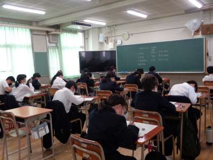 写真は7年生の様子です。初めての中間テスト、みんな頑張っています。