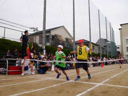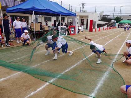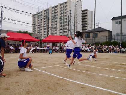 開会式、応援合戦の後、競技が始まりました。午前の部では、50m走・野を越え山を越え・一周走などのさまざまな個人競技がおこなわれます。力いっぱいに競いあう姿は観る人の心を動かします。学年が上がるごとに強まる力感。ネットをくぐり、縄を跳び、ハードルを越え---ドンゴロスで飛び跳ねて転んでしまった。最後のさいごまでの競り合い。テープを切ったのはどちらでしょう。歓声とため息。---運動会の良さは今も昔も変わらない---そんな思いを保護者のみなさまも持つのではないでしょうか。