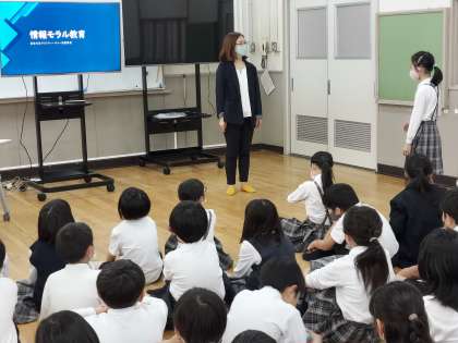 東淀川区ゲストティーチャー派遣事業として、「J:COM(ジェイコム)」さんにお越しいただいて、4年生に向けて、情報モラル教育を実施しました。