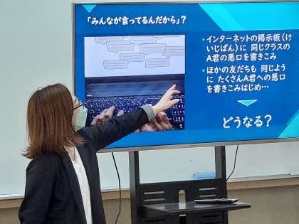 スマホやパソコン、ゲーム機など、インターネットやSNSの正しい使い方について、お話をしていただきました。