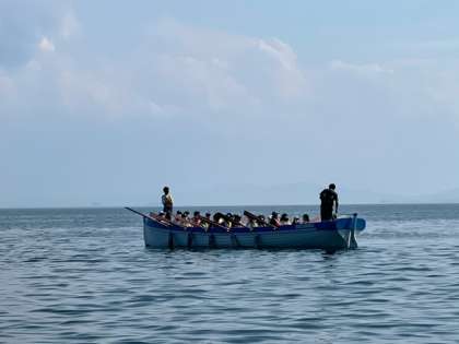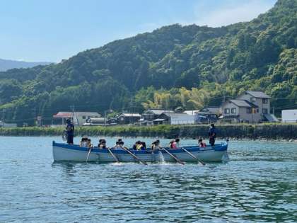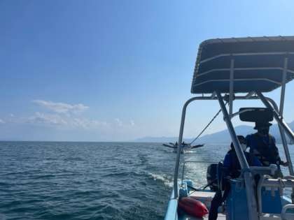 帰りはモーターボートに引っ張られて、青少年自然の家まで戻ります。