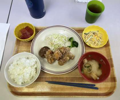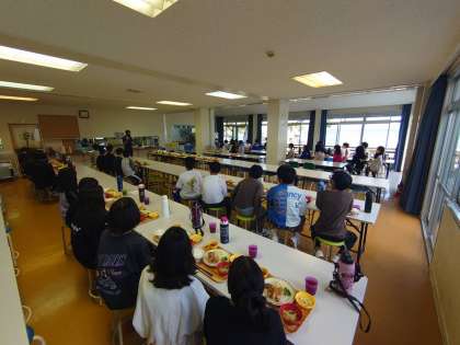 子どもたちはたくさんカッターを漕いだこともあって、モリモリ食べています。
