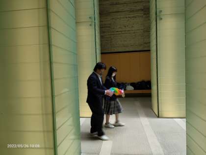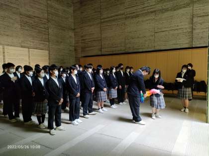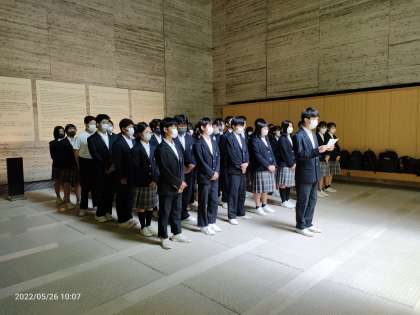 感染症対策で歌が歌えないのであらかじめ学校で録音したクスノキを流し、黙祷のあと、メッセージを読み上げ、千羽鶴を供えました。