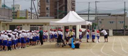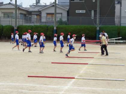 そして、5限目は5年生と6年生の団体競技の練習です。入場から退場までの流れも練習しています。
