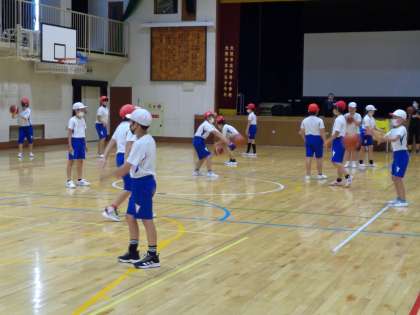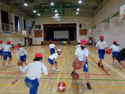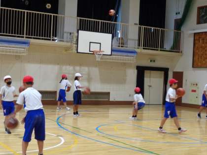 バスケットボールクラブは6年生が中心となって練習メニューを4年生5年生に教えています。