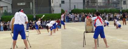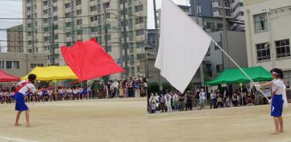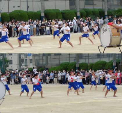 迫力のある応援合戦。みんなの大きな拍手とともに、気合が入ります。