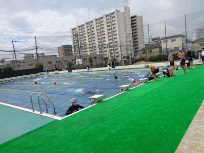 プールサイドのマットが劣化していたので、とりあえず一部分だけ、今年の授業が始まる前に、管理作業員さんが補修してくださいました。