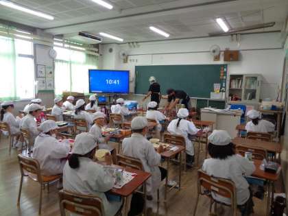 今日の献立もとても好評で、あるクラスは、おかわりじゃんけんが行われていました。