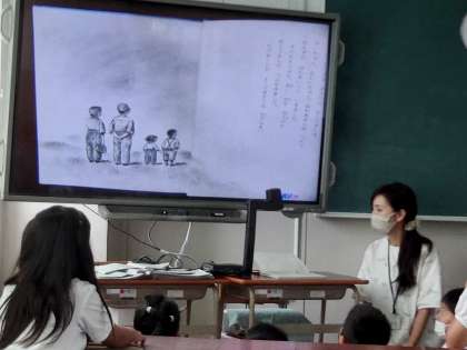 そのあと、戦争についての絵本の読み聞かせをしたり、動画を見たり、担任の先生から平和についてのお話を聞いたりしました。