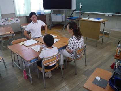 7/10(金)、全学年で学期末懇談会がはじまりました。勉強のこと、学校生活のこと、友だちとのすごしかた、家庭でのようす等々、さまざまな話で時間はあっという間にすぎてしまいます。よくできた、がんばったとほめられた言葉を大切にしましょう。もう少しがんばろうと指摘されたところは自分なりの改善策を考えましょう。よい方法が思い浮かばない時は先生たちが相談にのります。