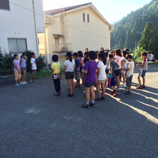 7月25日(土)午前7時、朝の集い。みんなで元気にあいさつをした後、ラジオ体操で体をほぐして2日目がスタート。早朝から体を動かしているせいか、朝食が待ちきれない様子の児童の姿。メニューはオムレツ、ご飯とお味噌汁。食事係がてきぱきと配膳します。「いただきます」の後、美味しく食事をいただきました。改めて「食べて・動いて・よく寝よう」の大切さに思いが至ります。後片付けもみんなで協力してスムーズに完了させました。さあ、午前中の野外活動の飯ごう炊さんの準備です。忘れ物のないよう各自が責任をもって準備をしましょう。できあがりが楽しみです。