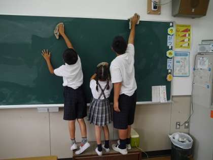 7月16日(木)、夏休みを前に大清掃を行いました。むくのき学園では、小中一貫校の教育活動として、さまざまな場面で「異学年交流活動」を行っています。今回の大掃除では、6年生は1年生を、7年生は2年生を手伝いました。お互いに少し気を使いながらも、非常に仲よく、協力しながら教室、廊下などをきれいにしてくれました。上級生は下級生に恥じないよう、下級生は上級生の足手まといにならないよう、いつもより少し頑張っている姿が微笑ましく嬉しい光景でした。
