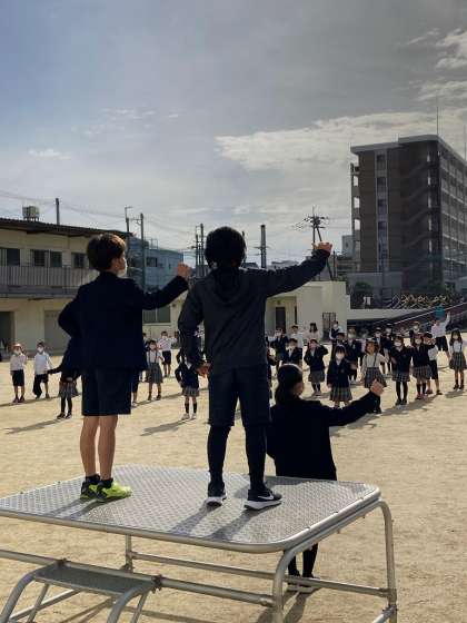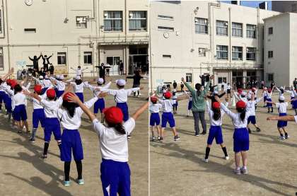 運動委員の見本を見て、みんな楽しそうに踊ることができていました。